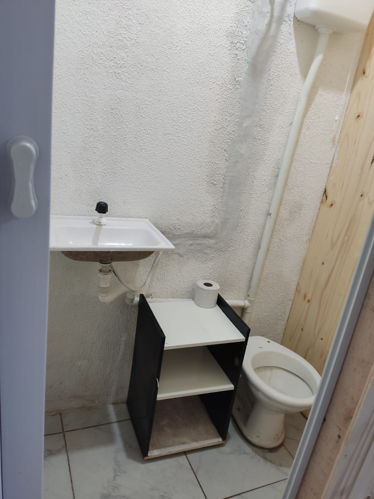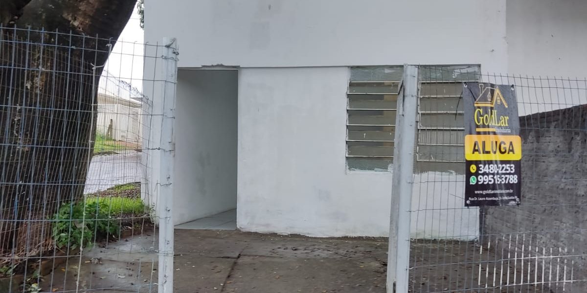 sala comercial com 20m², lavabo e pequeno pátio frontal. Água e luz incluso.